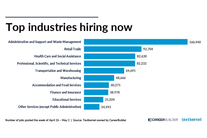 Look into administrative roles, support services, waste management, retail and healthcare, among others.