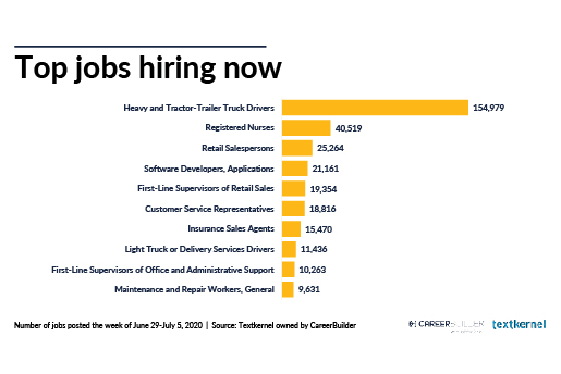 The top three positions with the most open roles are truck drivers, registered nurses and retail sales. Use the CareerBuilder salary tool to find what you should be making – then upload your resume in minutes.