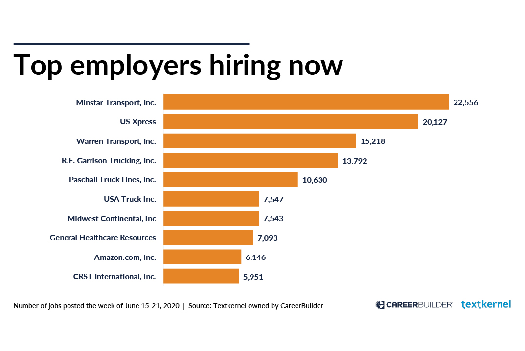 The top five companies with the most jobs available are all in the trucking and shipping industries, with more than 80,000 jobs open.