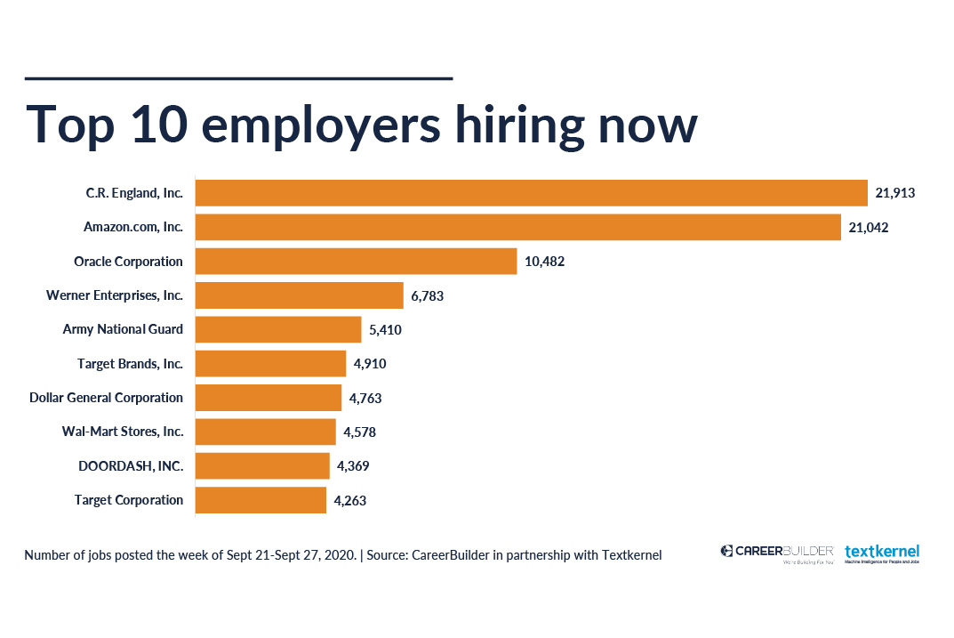 These 10 companies are hiring for more than 88,000 jobs. They include: