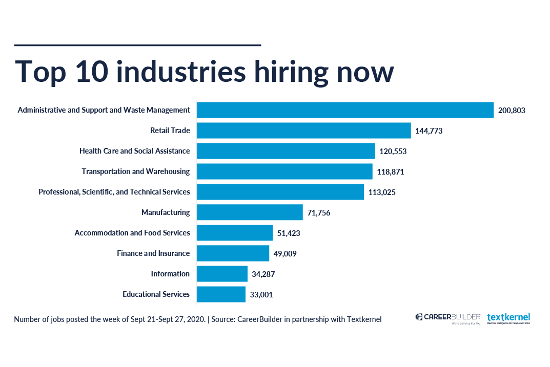 Industries with open jobs