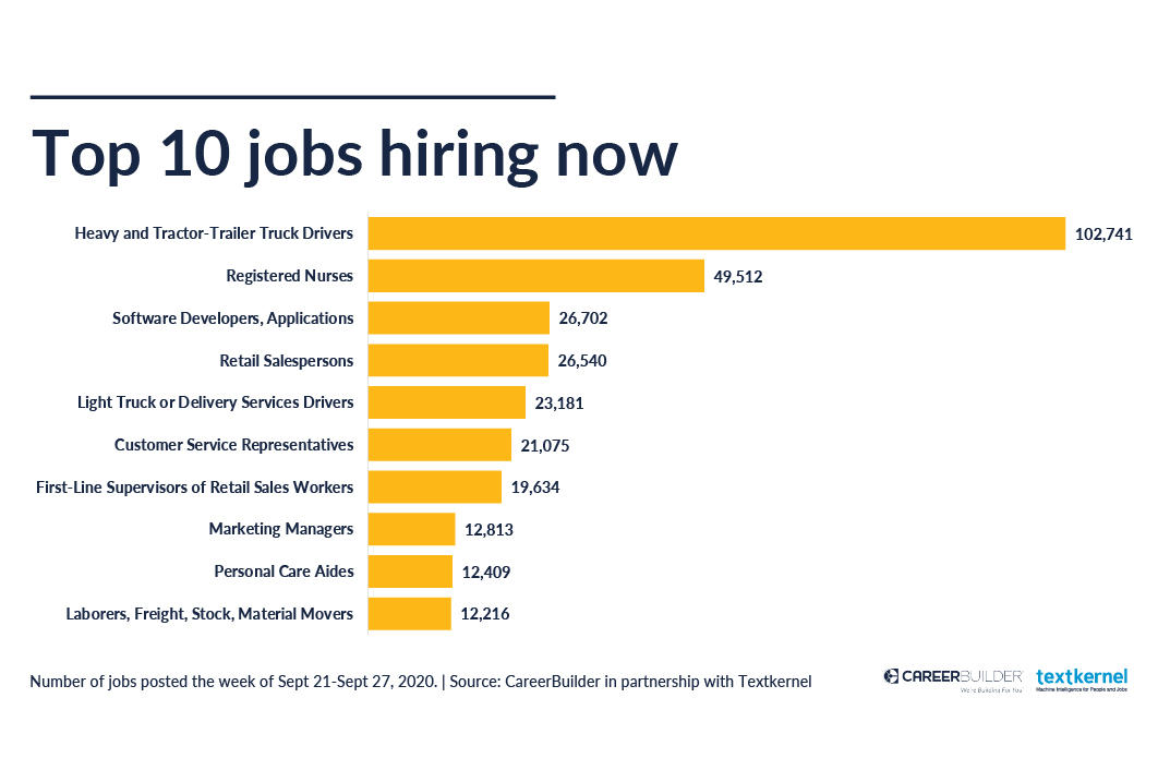The latest U.S. employment data was released on October 2, 2020. Here’s a quick overview of the numbers – then check out the 1.3 million jobs available this week across industries, companies and roles.