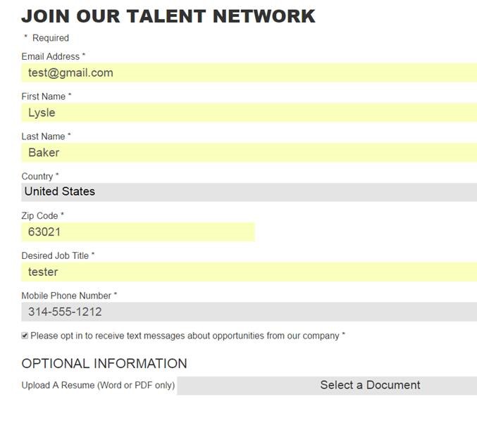 Talent Network clients will be provided with a specialized join form that asks candidates to opt in to receive text messages