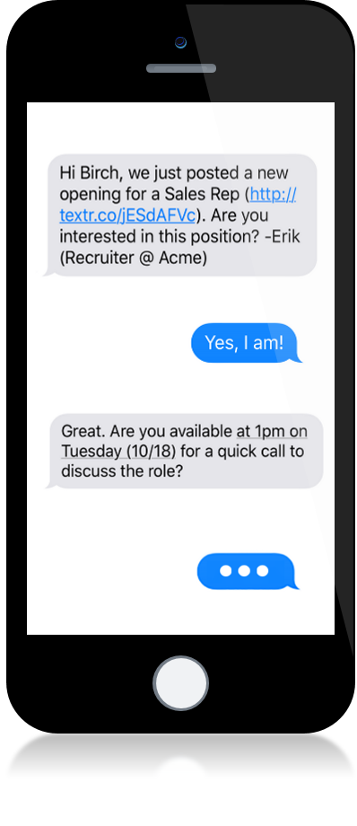 - Mobile app available. Text with candidates anytime from anywhere, using the mobile app.