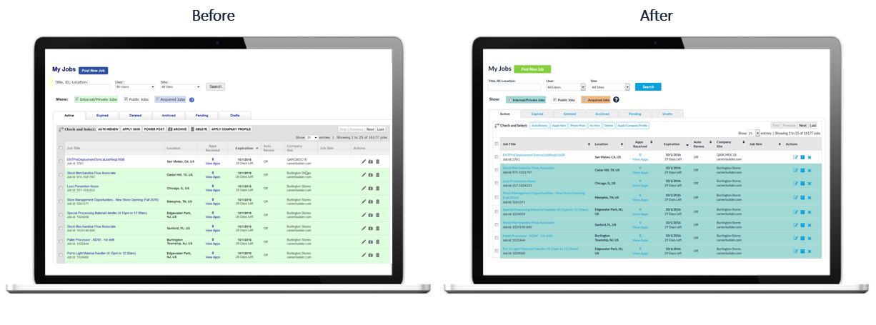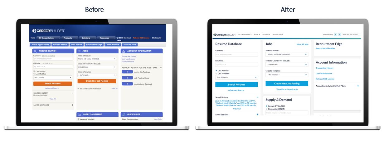The next time you log in to your CareerBuilder account, you will notice the same great functionality with a simplified interface for a more user-friendly experience. We also removed redundant information so you can access the products and resources you need faster.