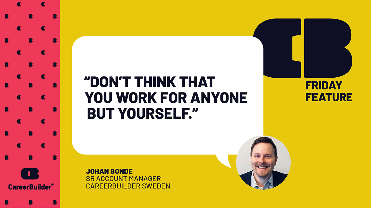 Johan Sonde has been with CareerBuilder Sweden for more than 15 years. He started in a finance role with Jobbguiden.se, a small job board startup, which was acquired by CareerBuilder soon after he joined. His career has evolved from finance to sales, as he wanted to be in a more client-facing role. He now sells the full suite of CareerBuilder Sweden product offerings.