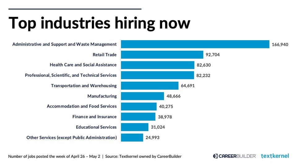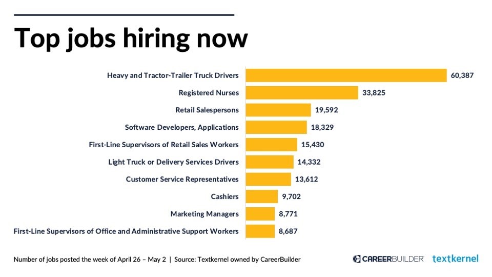 Every week, CareerBuilder shares real-time hiring data to provide insight into the coronavirus employment landscape. Follow us on social media via #CareerBuilderCOVIDData and check back here for the highlights.