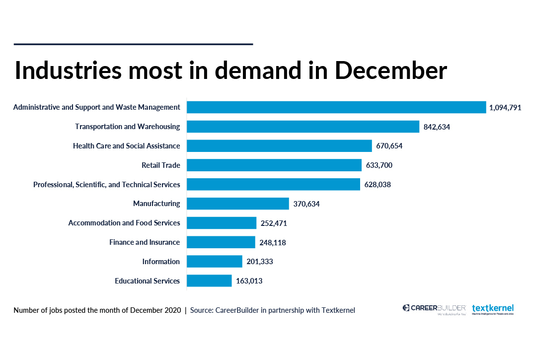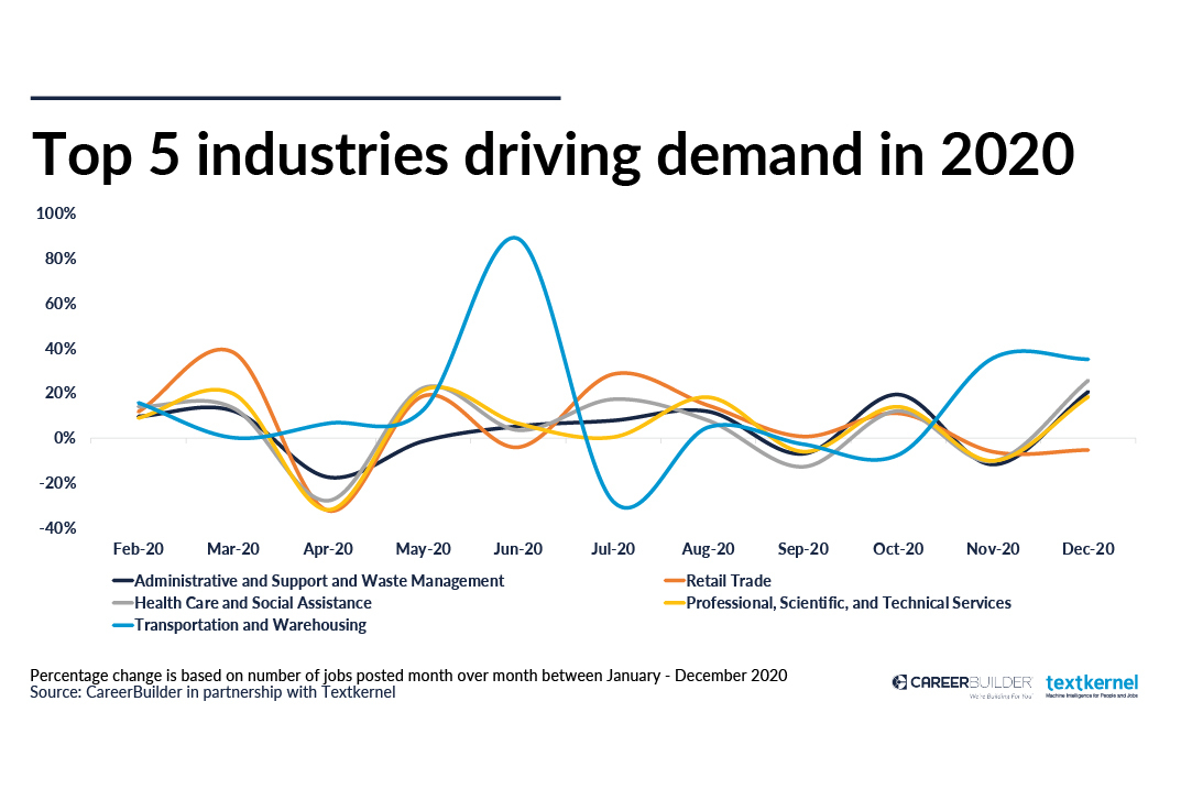 In a rollercoaster year of job loss and uncertainty, several industries drove demand and growth for jobs. Here is a look back at what was in-demand in 2020.