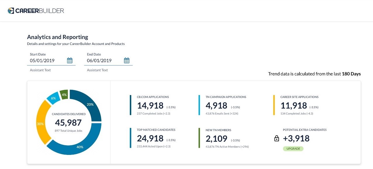 For example, CareerBuilder users now have access to a comprehensive analytics dashboard that combines all of the platform’s analytics in one place. Using the dashboard, employers can view the number of candidates delivered within a selected timeframe, identify which solutions contributed to the number of candidates sourced and track trends over time.