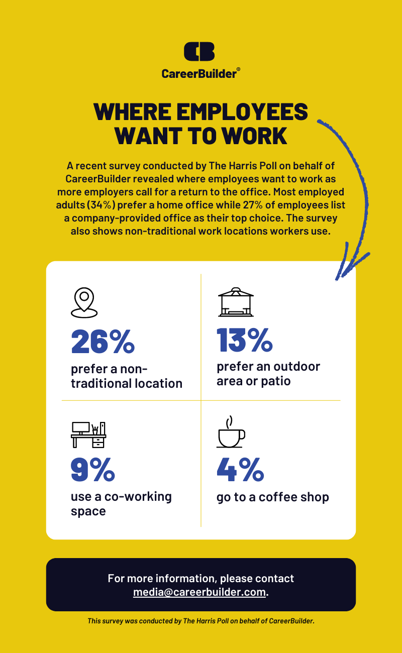 The survey also revealed that 26% of employees, primarily Gen Z (44%) and Millennials (30%), lean more toward a non-traditional work location with 13% preferring an outdoor area or patio,