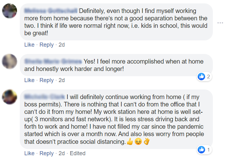 Most employees are enjoying work from home, whether it’s saving time and money on commutes and early morning routines, or simply having flexibility and comfort throughout the day: