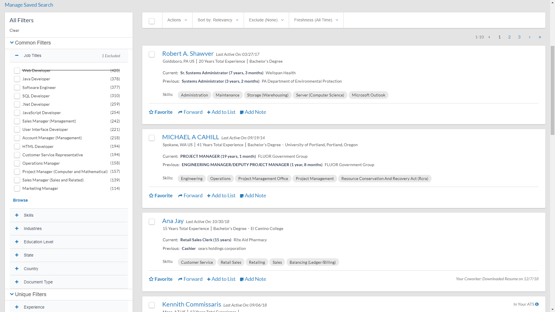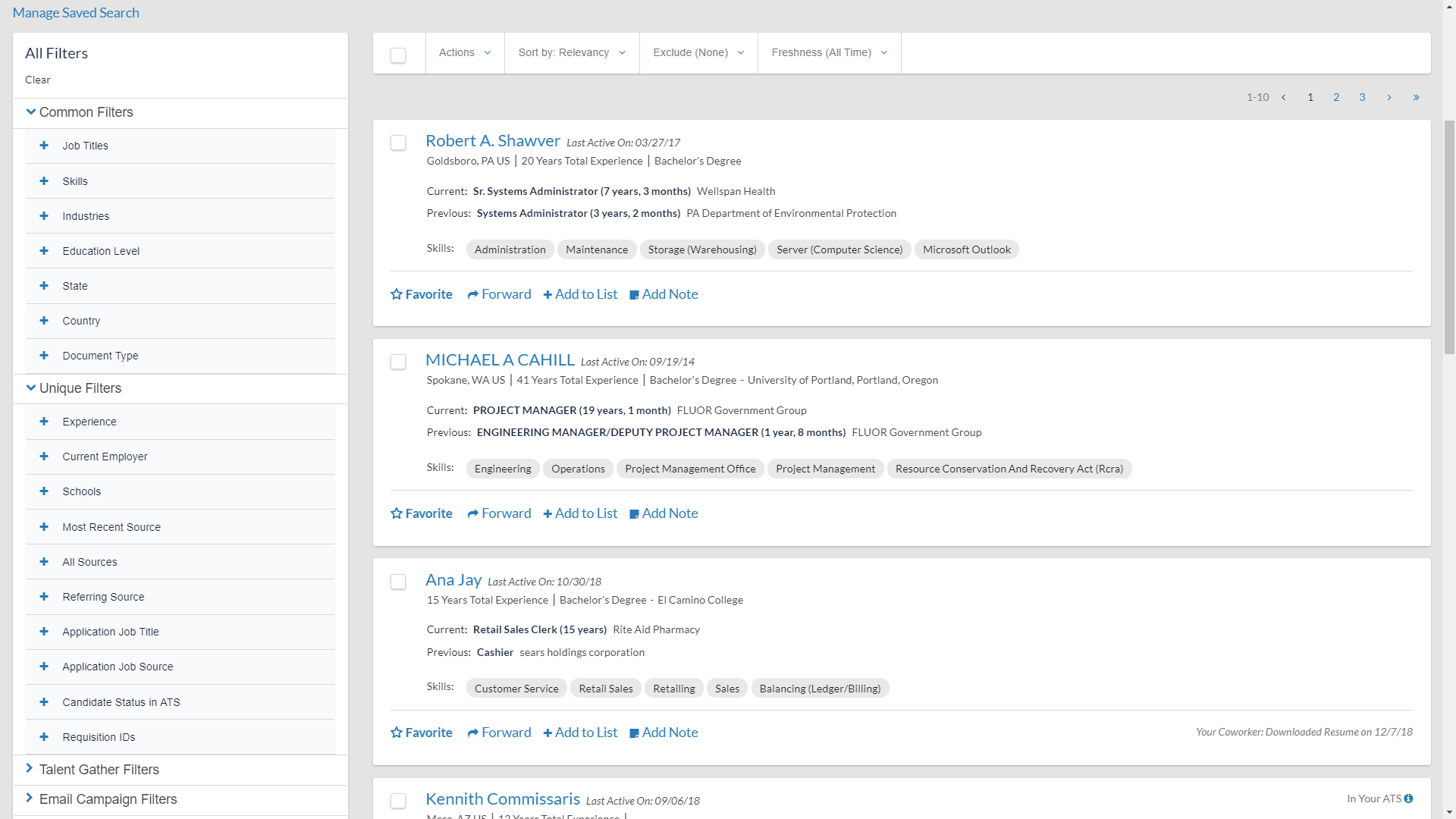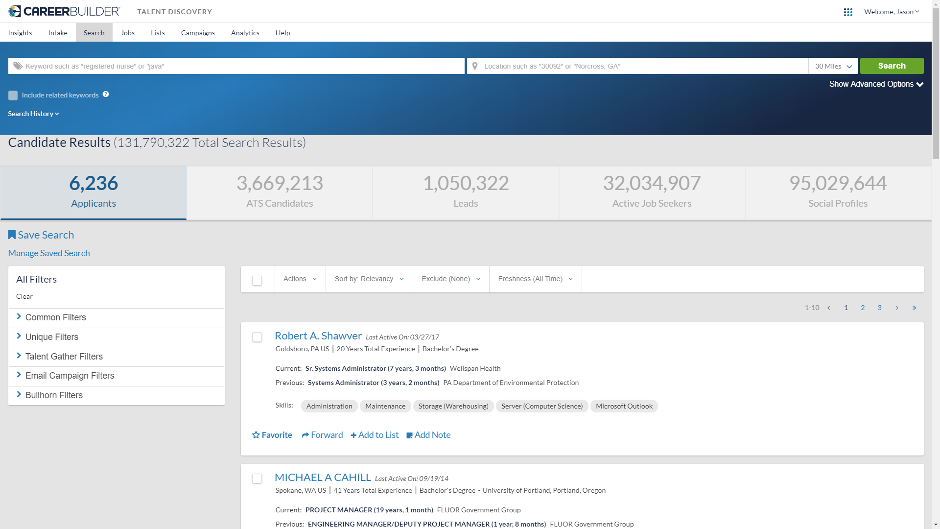 Common and Unique Filters: Users can now apply common filters across all of their search results or unique filters to specific data sets, providing an even better way to get to the best candidates quickly and easily.