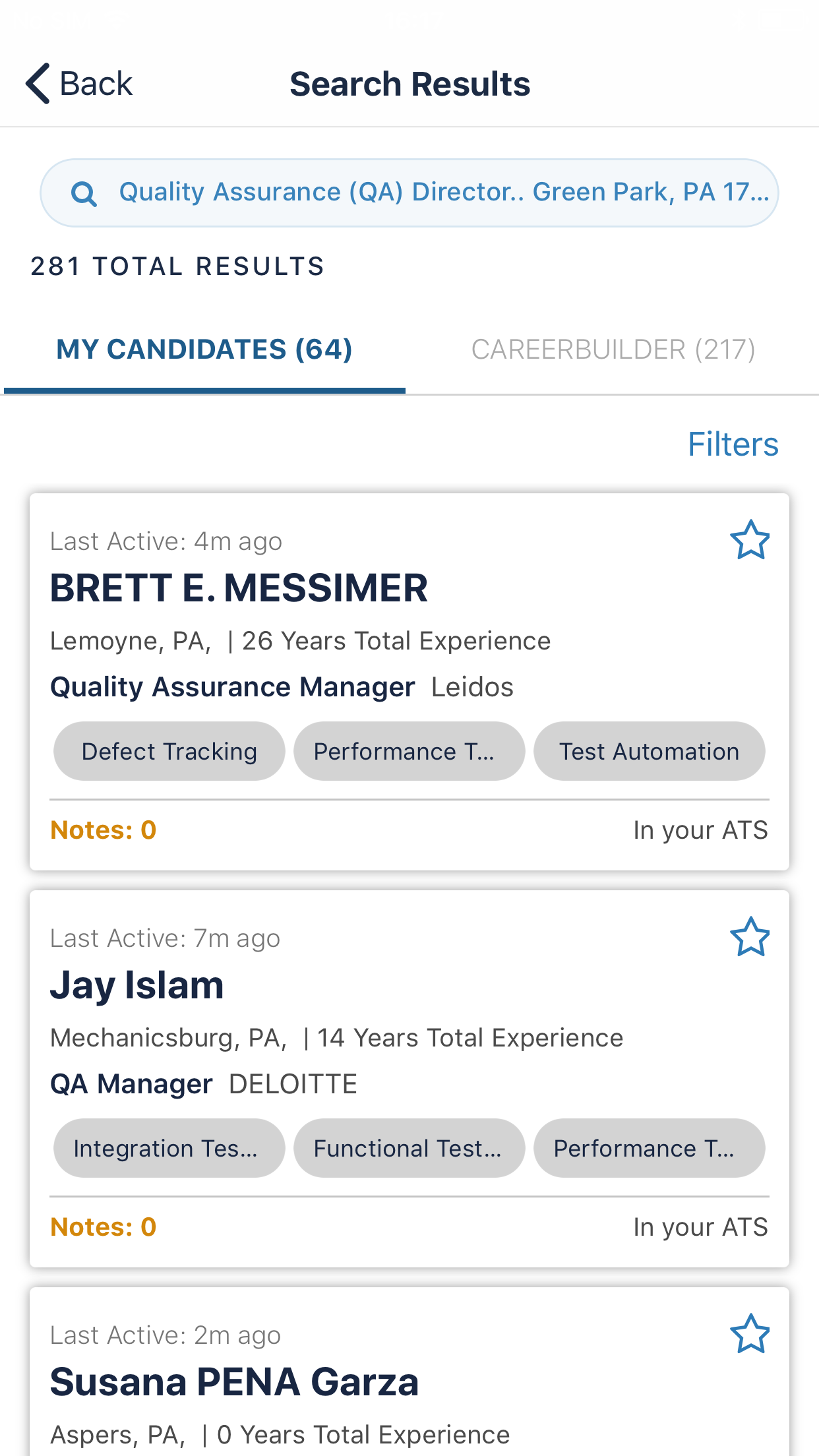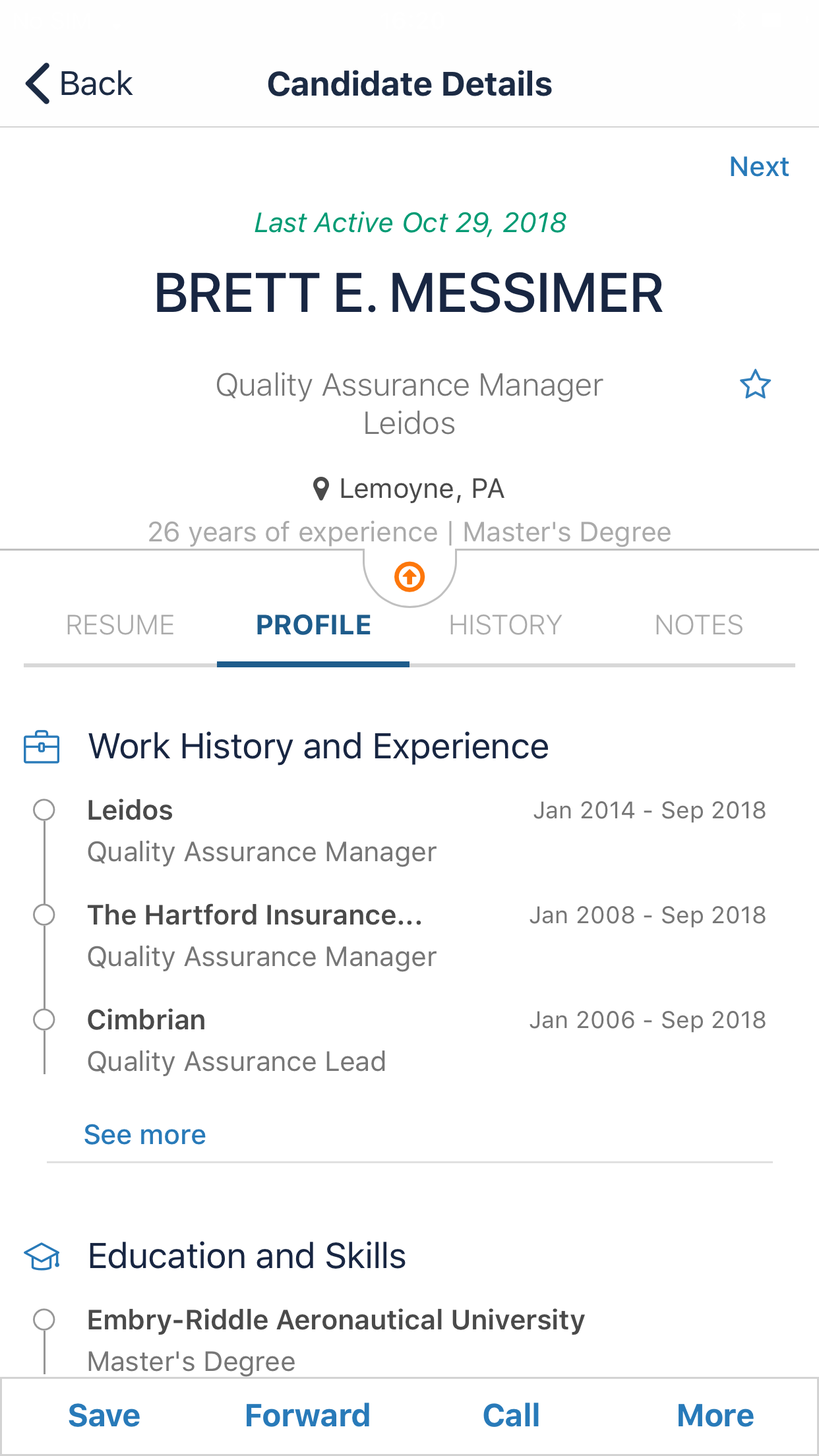 - Candidate Communication: Users can click to call, click to text and click to email using the native phone capabilities.