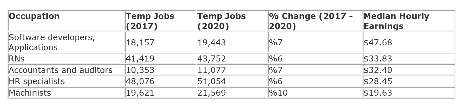 Here’s a sampling of some of the fastest-growing temp jobs over the next three years (2017-2020).