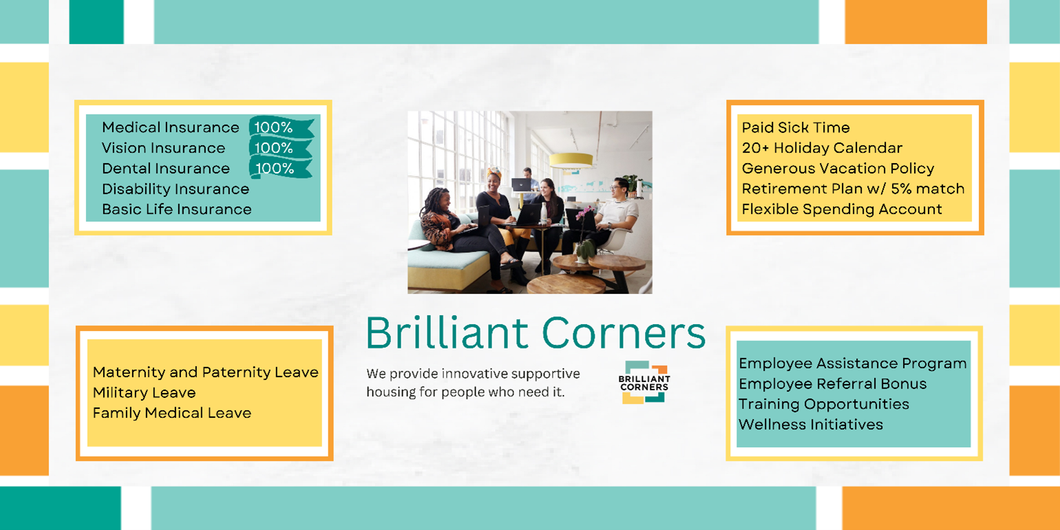 Brilliant Corners does not discriminate on the basis of race, color, religion (creed), gender, gender expression, age, national origin (ancestry), disability, marital status, sexual orientation, or military status, in any of its activities or operations. These activities include, but are not limited to, hiring and firing of staff, selection of volunteers and vendors, and provision of services. We are committed to providing an inclusive and welcoming environment for all members of our staff, clients, volunteers, subcontractors, vendors, and clients. We will consider for employment qualified applicants with arrest and conviction records.